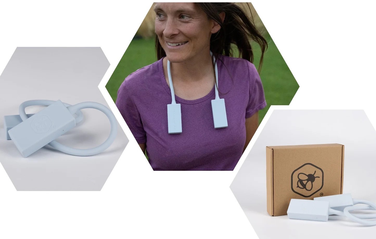 The Bee Calm Buzzer is a bilateral stimulation device that can be used in a variety of ways.It can be worn over the shoulders, held in hands, inserted in pockets, etc.